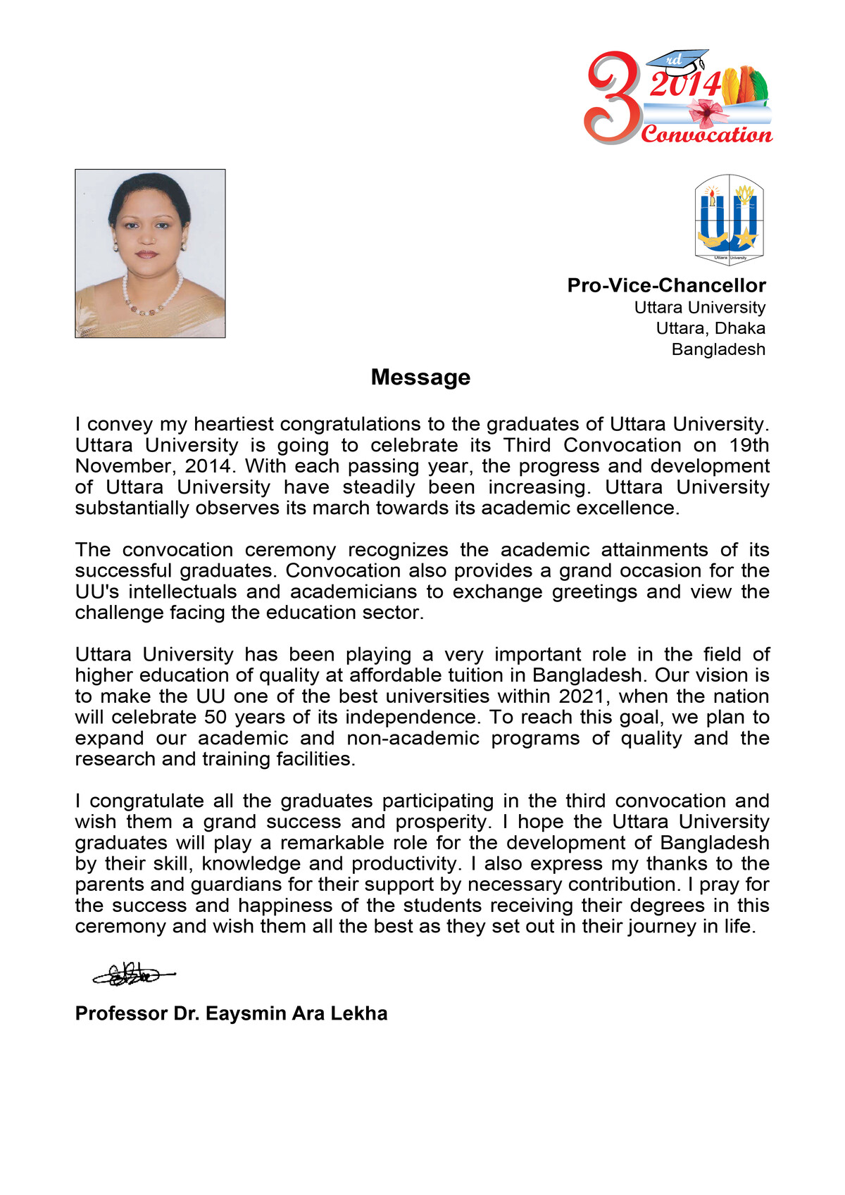 Convocation Message