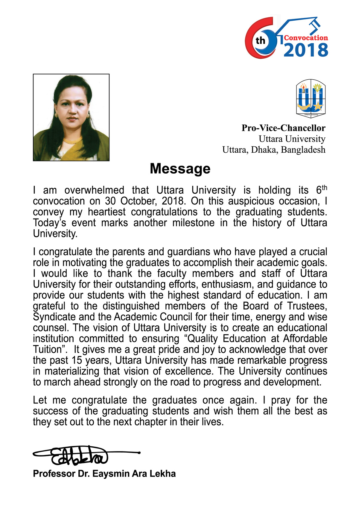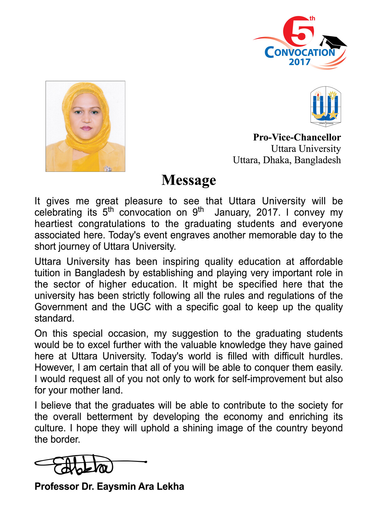 Convocation Message